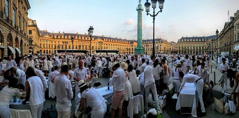 The 2016 Dîner en Blanc brought the pop-up dinner to a location that had not worked out due to construction back in 2012 for the 25th anniversary: the Place Vendôme.