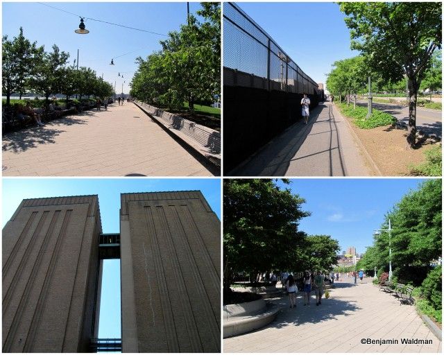 One of the benefits of walking the Greenway is being able to take a stroll through these lawns and plantings. These paths are technically off limits to bikes. The Lincoln Tunnel ventilation building is one of the few structures west of the path. The grandeur of the Greenway that bounds the lower Hudson River stems from the fact that it’s its own park. Hudson River Park was advocated for and funded by the Hudson River Park Trust and the Friends of the Hudson River Park.