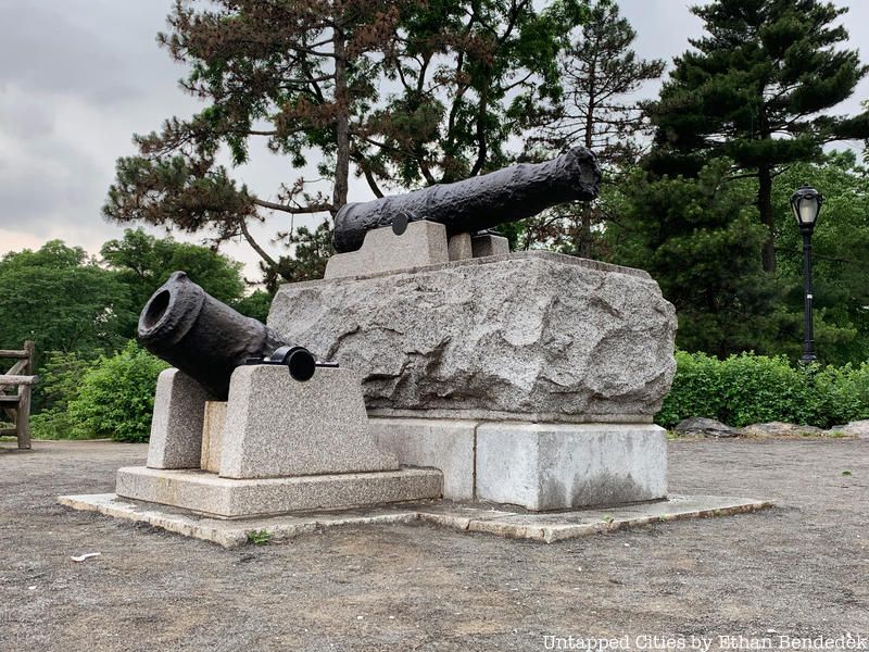 This cannon was used on a British ship that sank in the East River. After an anonymous donation in 1865, it was installed at Fort Clinton in 1905 where it remained on public display until 1996 when the Central Park Conservancy brought it indoors to protect it from vandalism. In 2013, however, workers from the Central Park Conservancy, while trying to refurbish and clean the cannon, found it to be still active — fully loaded with 800 grams of live gunpowder, cotton wadding and a cannon ball. The gun powder has since been removed, and the cannon is now reinstalled in Fort Clinton, at 107th Street, close to 5th Avenue. Another military remnant that can be found on the northern end of the park is the Central Park Blockhouse, a fortification built for the War of 1812.