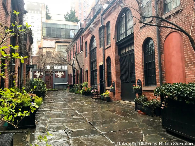 This small private alley–now a historic district–is located in Murray Hill and is a private street. Starting in 1863 and ending one year later in 1864, John Sniffen built 10 carriage houses lining the alley, that have now been coverted into apartments. It has an old world feel with two white pegasus’ gracing the back wall.