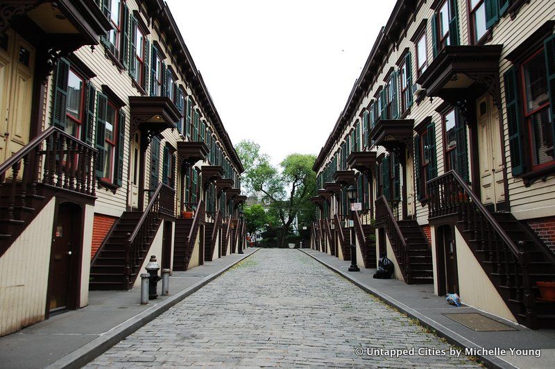 Located in Washington Heights just next to the famed Morris-Jumel Mansion, Sylvan Terrace is a small street lined with townhouses that seem to have changed little in appearance since their construction in the 19th century. They were all built at the same time by architect Gilbert Robinson Jr. in 1882 and were originally home to middle class residents. A common misconception is that they were built for servants for the mansion, but that is false. You may also recognize Sylvan Terrace for its appearance in the first season of Boardwalk Empire, used as the exterior of the apartment where Nucky Thompson moves Mrs. Schroeder (later Mrs. Thompson)