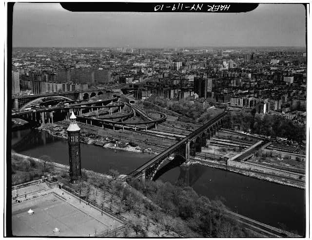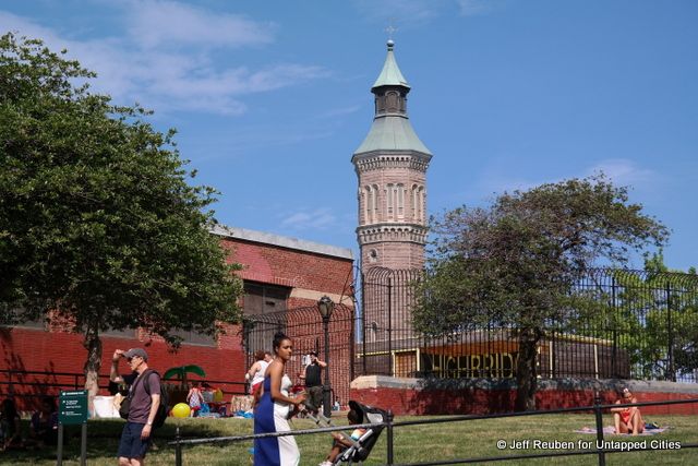 “Since 1872, a slender and graceful water tower overlooking old High Bridge and the Harlem River has been one of Manhattan’s most picturesque architectural monuments. This impressive tower resembling a medieval campanile is a rugged manifestation of the early Romanesque Revival style of architecture.” – NYC Landmarks Preservation Commission, Landmark Designation Report, 1967.