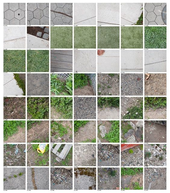Examples of work on display in the current exhibit at Radiator Gallery include a poster illustrating some of the wild plants found in the area and a photo typology of the “endangered surfaces” to be lost as the area becomes a new neighborhood of streets, buildings, and landscaped parkland.