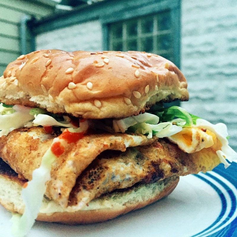 “…who takes naan shaped into a traditional burger bun roasted in a true tandoor, speckled with fresh sesame seed to sammich some sweet and sour shredded BBQ chicken? A squirt of Sriracha and you’ll be as solid as the Himalayas.”