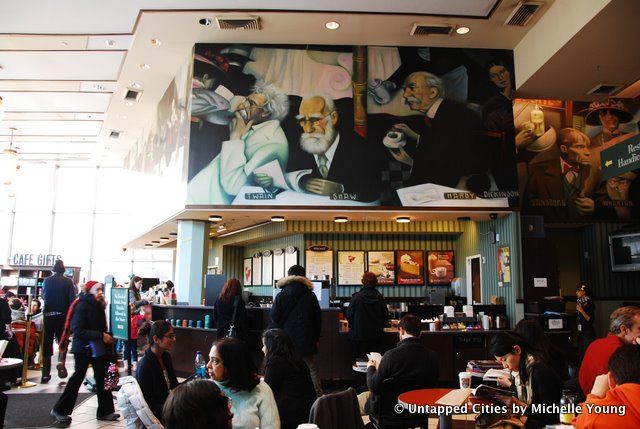 People were taking pictures of the massive murals in the cafe with the portraits of Hemingway, Wilde and other greats, seeming to sense it would be covered over soon. I savored my last drink from the cafe (a glorious hot apple spice) and embarked on my photo mission to document what would soon be lost to the discount retailer, Century 21.