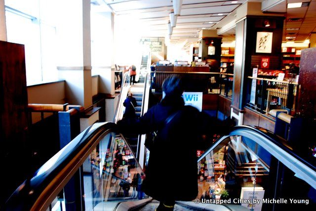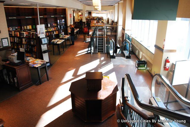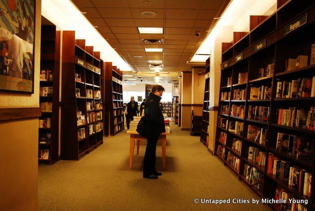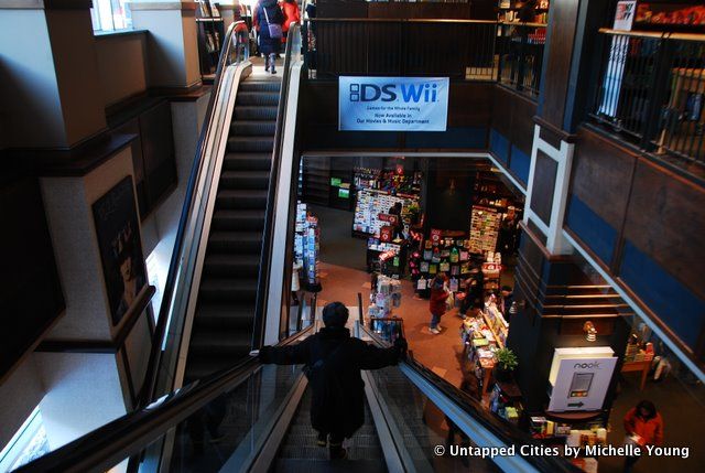 I got reprimanded three times for taking photographs so I did not get everything I wanted, especially the large collection of old Lincoln Center concert posters and photographs. But I hope in the pictures below that I captured the great variety of spaces in this store: the open design around the escalators (always giving views of the floors above and below), the high ceilings to convey a simultaneous grandeur and modernity to literature, and the small nooks to lose yourself. The store consciously incorporated the culture of Lincoln Center, not only with the concert posters but also with a space for concerts and book readings.