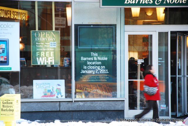 A couple days before New Years, I went to say my goodbye to the Barnes & Noble at Lincoln Center, where as a teenager I bought all of my bound, hardcover Jane Austen and Charles Dickens novels, where I had sat on the floor reading magazines near the cafe and where I read the entire Calvin & Hobbes series near the kids corner. It was bustling as usual, but the rows of empty shelves and roped off areas signaled its impending demise.