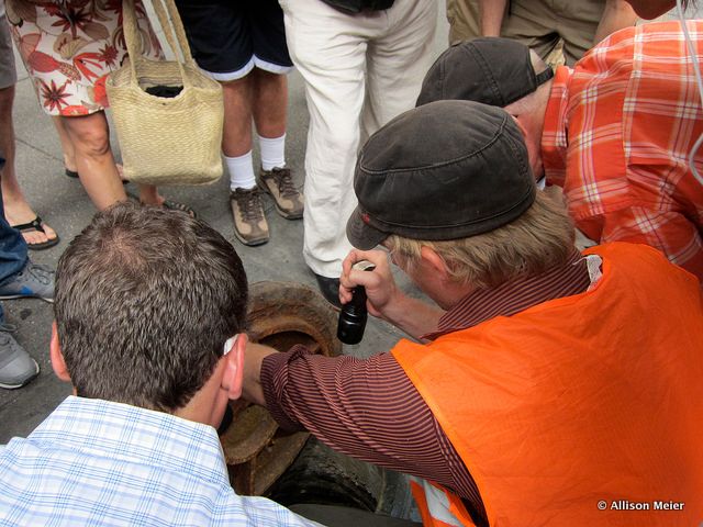 As interesting as the tour was, I found the people on the tour just as fascinating. A Swiss woman in town for a month, a professional NYC tour guide, a cameraman, a NY Historical Society volunteer, two guys from the Botanical garden and more. Asking questions of my fellow tourists was almost better than looking into the manholes.