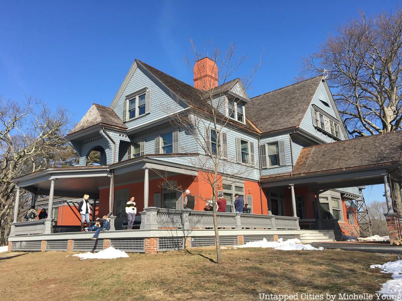 Theodore Roosevelt lived on his estate in Sagamore Hill from 1885 until he died in 1919, using the house as his “Summer White House” while President of the United States for two terms from 1901 to 1909. In 1880, Roosevelt purchased this property at the youthful age of 22, buying 155 acres of land for $30,000. By 1886, the Queen Anne style house was up, designed by the Manhattan firm of Lamb & Rich, who also designed Pratt Institute in Brooklyn and Barnard College. Today, the house can be visited as one of the sites of the National Park Service, with guided tours.