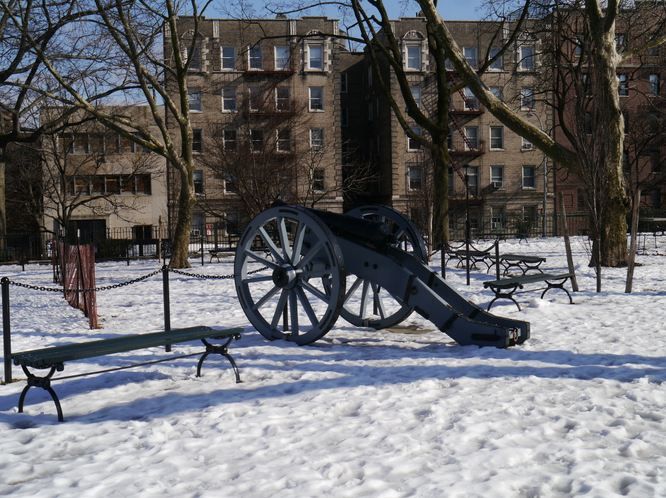 The park is actually the former location of Fort Washington where the Continental Army delayed the advance of British troops in 1776. One can still see an old canon protecting our great city.