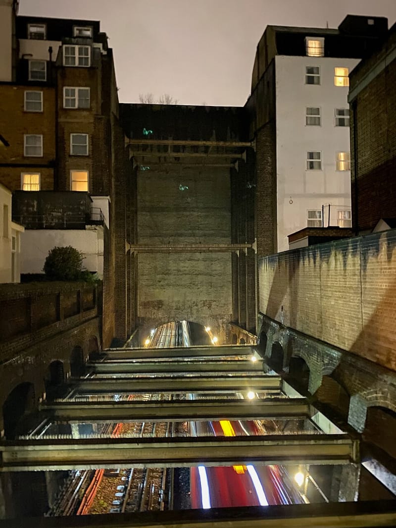In London, at 23-24 Leinster Gardens, there is a little secret. The facade, which matches with the rest of the block (except for the perpetually gray windows) is the front to an empty lot. The original buildings were demolished to build the London Tube in 1863 and used in action as a ventilation location for steam produced by the locomotives. In the back however, you can still see the tube tracks of the Metropolitan Line.