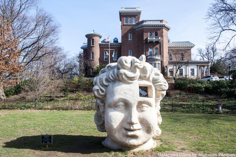 Leonard Ursachi’s oversized styrofoam head, Fat Boy, graces the lawn in front of the Litchfield Villa in Prospect Park through November 10th. The head measures 9 1/2 feet tall and is 8 1/2 feet wide. The Brooklyn Public Library will host Behind Fat Boy–a companion exhibition to this –from June 12th to September 25th. Behind Fate Boy will include original sketches of the Fat Boy series, and will be located at the Central Library, 10 Grand Army Plaza in the first floor lobby gallery on the southwest side of the building. Both presented by NYC Parks Art in the Parks program.