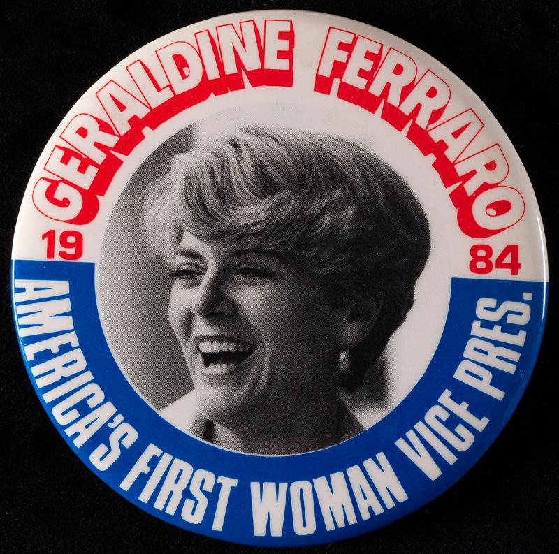Geraldine Ferraro Campaign Pin, Museum of the City of New York, gift of Amy Sack, 96.24