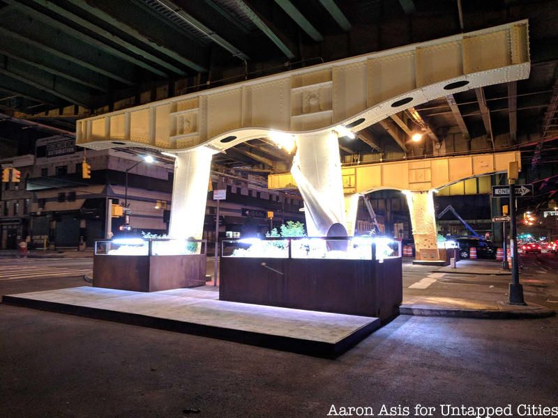 Last night, we were honored to be a partner in the launch of El-Space, a long-term pilot installation located under the Gowanus Expressway in Sunset Park at 36th Street and 3rd Avenue, just adjacent to Industry City. El Space is an initiative of The Design Trust for Public Space and timed for launch during NYCxDesign Week. It’s the product of a five year, critical exploration in how New York City can better activate the forgotten, unfriendly spaces beneath aging elevated infrastructure and culminates in this first pilot installation that showcases what an alternative walkway beneath the Gowanus Expressway could look like.