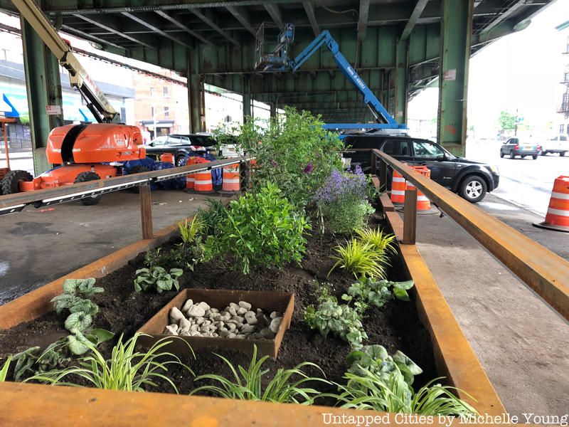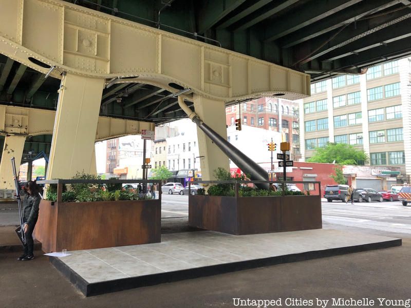 With El Space now in place, the team at The Design Trust for Public Space will be analyzing it for sustainability and pedestrian safety, checking the effectiveness of the low light plantings in cleaning the air and capturing storm water from the highway above, critiquing how the lighting fixtures provide better and artistic illumination for people at the intersection. The initial reactions from the neighborhood seem positive – a local worker, with his drill in tow, simply said, “beautiful” and told us he comes by El-Space every day to see it. “Sunset Park is changing a lot, and it’s good,” he explained. Community input can make all the difference in how these types of activations are used and received, and will ultimately, determine their success. It’s great to see the city working in tandem with non profits like The Design Trust for Public Space to bring innovative ideas right to the street, with the pedestrian, be it the local community, a commuter, or a visitor, in mind.