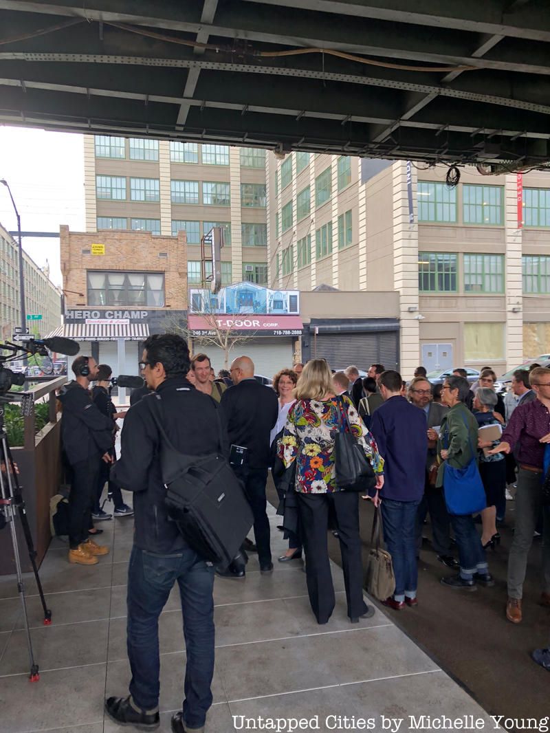 Last night’s launch featured a site visit with NYC DOT Assistant Commissioner Wendy Feuer and Director of Urban Design Neil Gagliardi, Industry City CEO Andrew Kimball, alongside Design Trust’s El-Space Fellows landscape architect Tricia Martin, urban designer Quilian Riano, and lighting designer Leni Schwendinger (and many Untapped Cities Insiders who attended the event for free!). It was followed by a panel discussion moderated by Susan Chin, Executive Director, Design Trust for Public Space featuring eminent public space activists from around the country looking at elevated infrastructure.