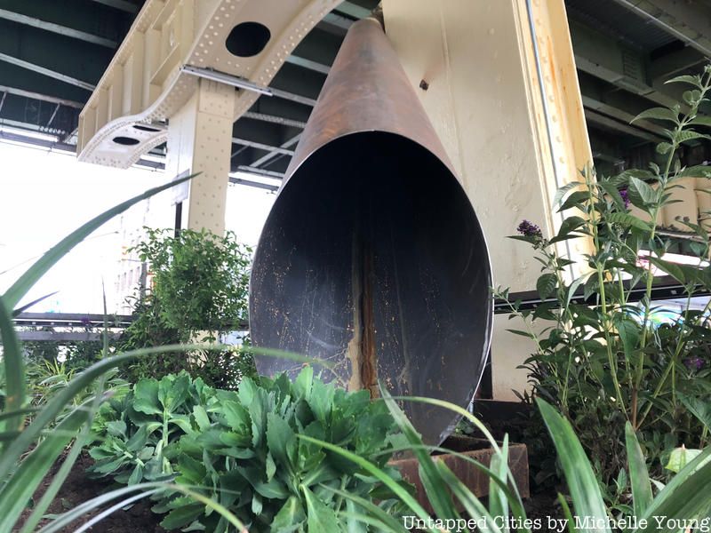 El-Space was designed with input from the diverse local community through charettes and on-site pop-up workshops, including work with students at Sunset Park High School and members of a Community Advisory Board. It was constructed with support from the NYC Department of Transportation, Industry City, New York Community Trust and New York Building Foundation. It’s the first installation in a plan to create more El-Spaces throughout the five boroughs which will be used to test and refine strategies for future permanent activations that aim to increase environmental health and enhance pedestrian safety for residents and workers at busy intersections under elevated infrastructure. The design tests strategies for lighting, green infrastructure, and urban design for replicability, aesthetics, and of course, how the public uses and engages with it.