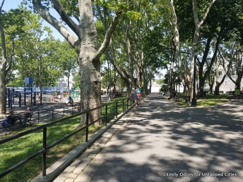This park, located next to the Cemetery of the Evergreens from which it gets its name, is a great place to cool off in the playground fountains or take a stroll if you’re on that side of the train. The park, though covering a small area, has the feeling of a Manhattan park with the old fashioned lamp posts, a dugout and big trees. The park is stranded in the quietest park of the neighborhood to the fast East, and has an intimate quite atmosphere despite the numerous amenities.
