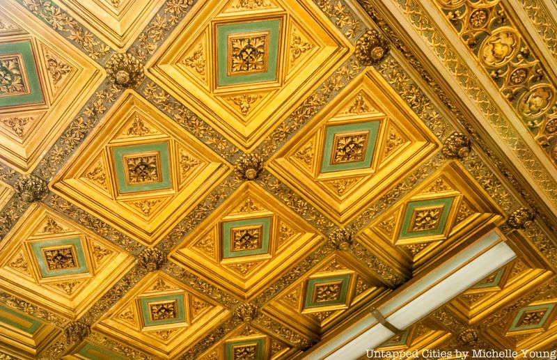 Coffered ceilings can be found throughout the Woolworth building and with the upper floors of building being turned into luxury condos, some are being given new life. The coffered ceiling of Frank Woolworth’s 40th floor private office has been removed, restored and relocated to the private lobby for the Woolworth residences at 2 Park Place. According to Forbes, each coffer was cleaned with a cocktail of baby shampoo and seaweed and reinforced with Kevlar.