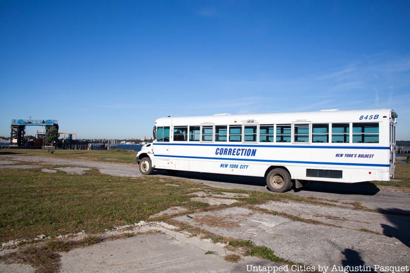 A Department of Corrections bus brings inmates and Corrections staff to perform and supervise burials in the Potters Field