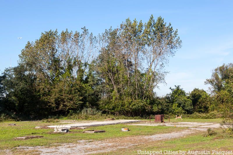 The remnants of the Cold War Nike missile launch area on Hart Island can still be seen clearly. The surface-to-air missile installation was overseen by the U.S. Army Air Defense Command from 1954 to 1961 for the purpose of defending against a potential Soviet attack. The Hart Island installation was one of at least nineteen in the New York City region. Though the control operations for the missiles was located on David’s Island, another abandoned island off New Rochelle, the launch area was on Hart Island which can be seen from David’s Island. What you see in the photos below are the foundations of the buildings where missiles were tested and assembled. An earthen mound nearby would have been where the missiles were fueled.