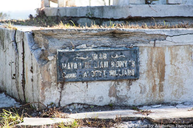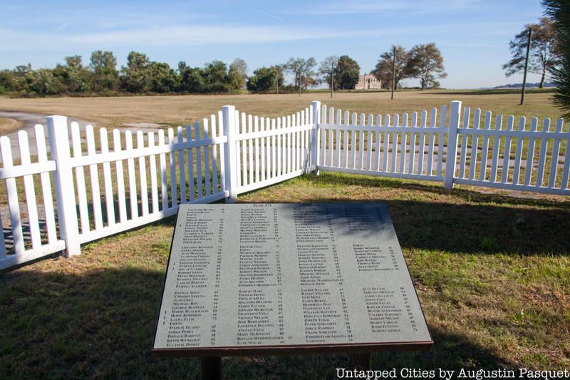 A placard denotes the names of those buried (if known) and the locations of the burials