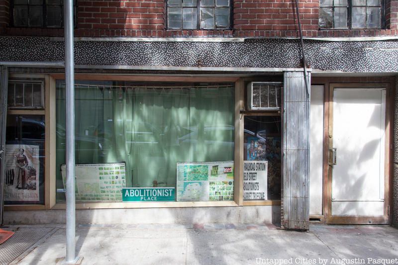 The storefront in 2016 when it still contained information from the 227 Abolitionist Place Museum and Heritage Center.