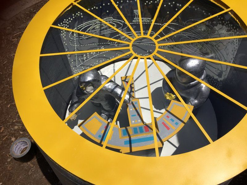 A sign on each level leads to the next staircase, until the level just before the top. It is impossible to complete the maze. In a secret entrance at the bottom of the piece, one rabbit hoards a stash of carrots. The rabbit maze is a commentary on the social, economic, and political system. It will be on display from July 10th, 2019 through July, 2020.