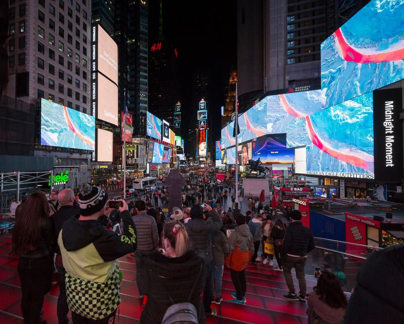 Midnight Moment is the world’s largest, longest-running digital art exhibition, synchronized on electronic billboards throughout Times Square nightly from 11:57pm to midnight. Presented by the Times Square Advertising Coalition and curated by Times Square Arts since 2012, it has an estimated annual viewership of 2.5 million.