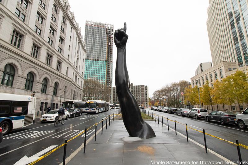 Modeled after the arm and hand of NBA athlete Joel Embiid, the sculpture is of an outstretched arm pointing towards the sky with its index finger. The sculpture, which took five years to create, was commissioned by New York City’s Percent for Art program. In a press release for the sculpture, Thomas said, “This sculpture is a homage to, and celebration of, the unique and multifaceted character of the borough of Brooklyn. The spirit of Brooklyn has always been about upward mobility and connection to roots.” Thomas also said the sculpture was a call to action to have people literally look up. All around the area where the sculpture is placed, and all over Brooklyn in general, new buildings are rising up. Some see the sculpture as Brooklyn loudly proclaiming itself as the #1 borough. We’ll let you decide for yourself.