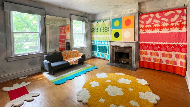 From June 1st through July 17th, the Governor’s Island site of ArtCrawl Harlem’s 2022 Boundaries & Connections Residency House hosts the installation, Much Needed Love, by fiber artist/designer Cat Schmitz. This art installation, open to the public, pushes the boundaries of materiality with sculptures present created with a range of media, incorporating rugs, quilts and even cement.