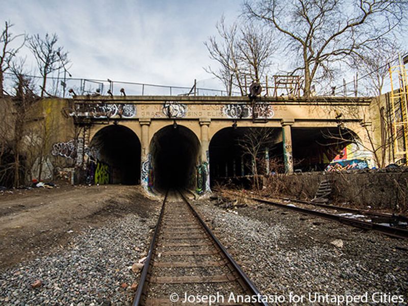 You have probably seen this tunnel in movies and television shows as the low volume of trains running through it — one or two a day — makes it an ideal location for video shoots. The East New York freight tunnel contains an abandoned train platform too, which was once part of the New York and Manhattan Beach Railway. Passenger trains stopped running through the tunnel in May 1924.