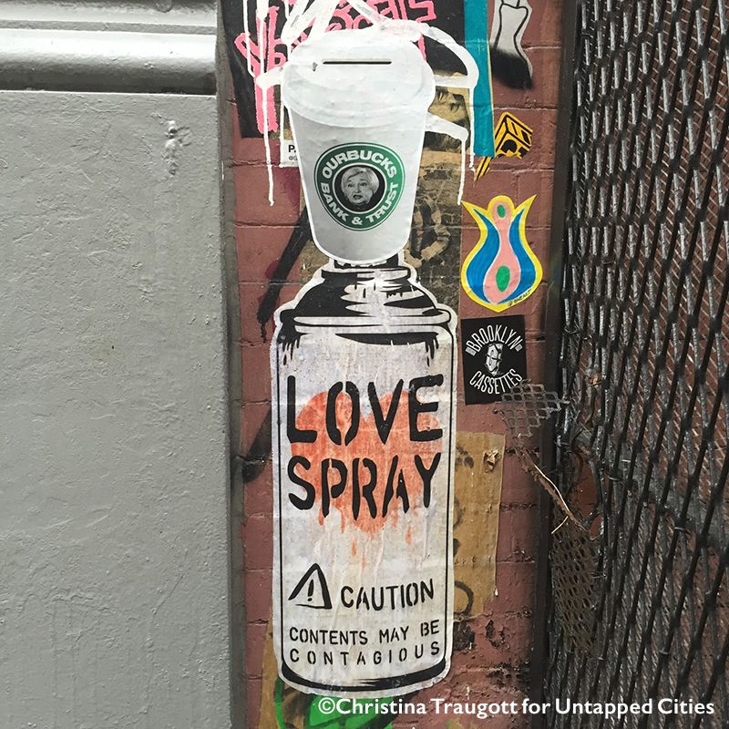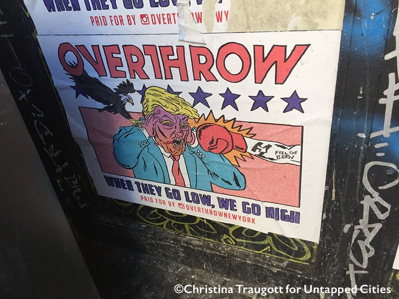 This poster found on the Lower East Side has Michelle Obama’s famous line, “Where they go low, we go high,” with Donald Trump’s orangey-purple face getting punched by a boxing glove and arm tattooed with the Hillary campaign “H” logo and the words “Feel the Bern.” The “Info” section of Overthrow New York, an underground boxing club, is sparse, yet substantial. It leaves viewers with a simple quote by Abbie Hoffman, a self-proclaimed “cultural revolutionary”: