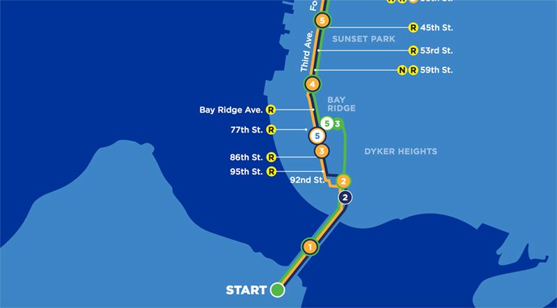 Catch the start of the marathon at this viewing location. After exiting the Verrazano-Narrows Bridge, determined runners — still energetic and ready to go — will race down Fourth Avenue, through the diverse neighborhood of Bay Ridge.