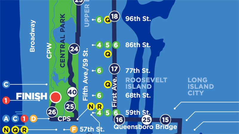 Tickets are required for access to the Grandstand where you can witness the final approach to the finish line. You’ll need to reserve a spot in advance of race day on Eventbrite. Enter at West 66th Street and Columbus Avenue with your Grandstand tickets. There is no spectator access north of the grandstands in Central Park. Spectators can enter at the following areas: Broadway at West 61st Street or West 62nd Street, or from the east side via the Central Park path by Heckscher Fields – Kickball Field #3.