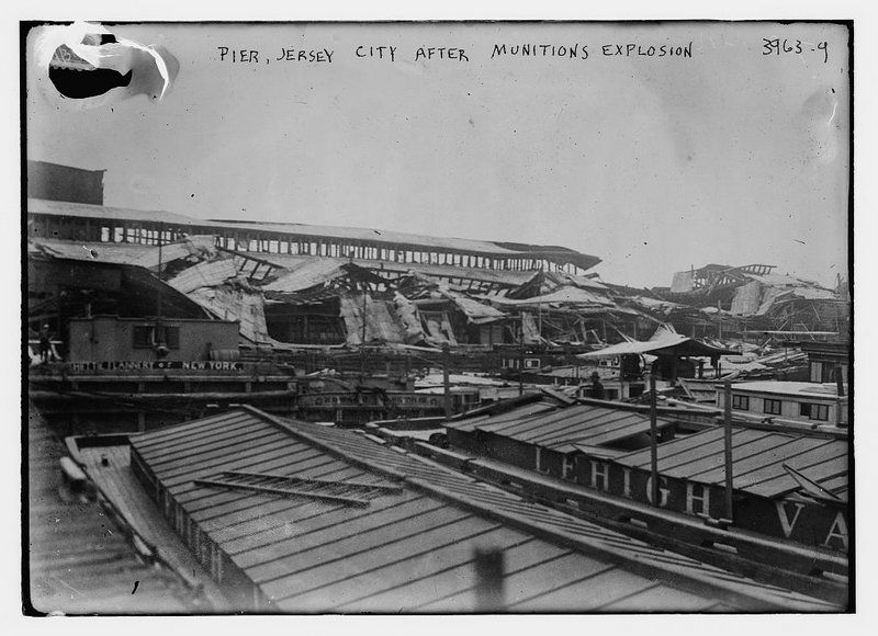 Aftermath of Black Tom Explosion on a Jersey City Pier. Photo via Library of Congress.