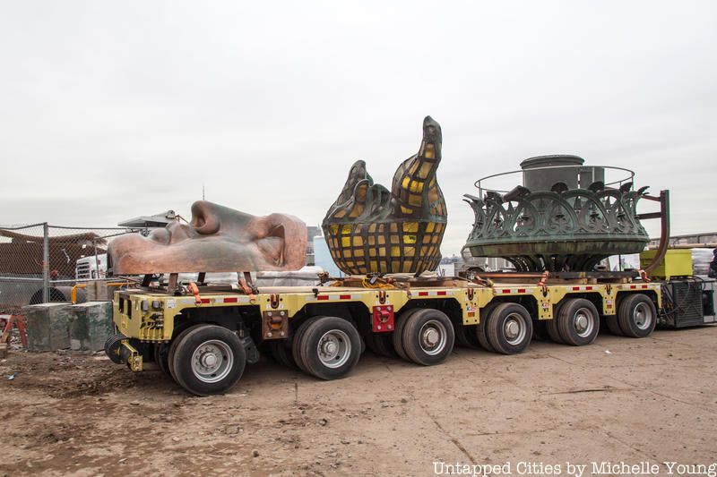 InIn 1986, the original Borghum torch was restored and installed in the museum inside the pedestal of the Statue of Liberty and was accessible to those with tickets to the pedestal or the crown. The torch was recently moved from that spot to its new home inside the new Statue of Liberty Museum, which is under construction and will open in May 2019. A special hydraulically stabilized vehicle was used to carry the torch the 470 feet between the museums, while a sizable SWAT team kept watch over the procession.