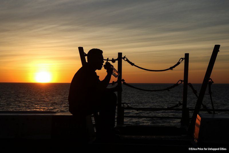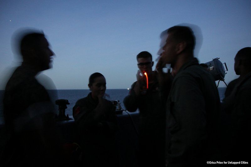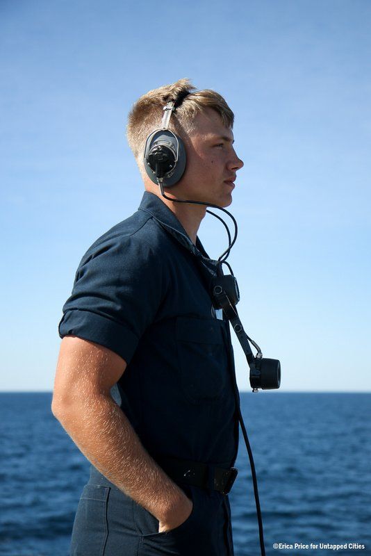 The USS New York has the largest pilot house of the Navy, running the width of the ship at 105 feet. Up on the bridge, a cigar social takes place about once every two weeks. And one of the most fun finds on the ship are the two exercise bikes on the ship – probably the best cycling view in the world. CMDCM Hodges says they sometimes come up here at 5 AM. He muses, “To ride a bike in the sunrise is an all right way to live.”