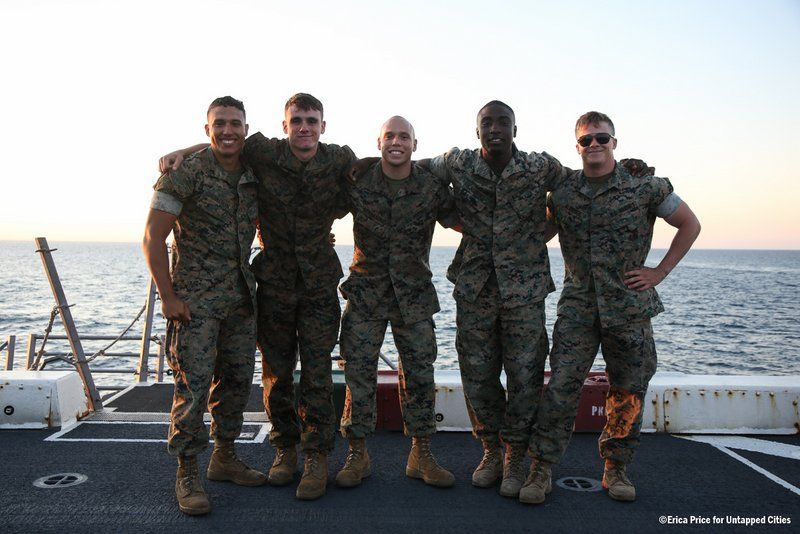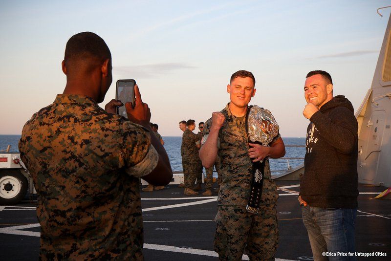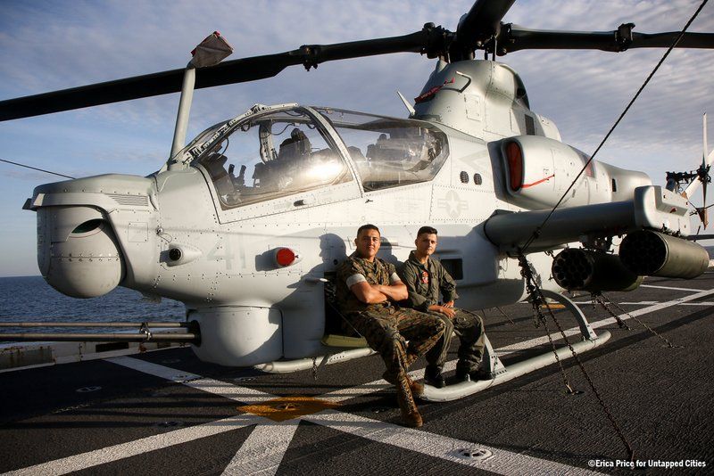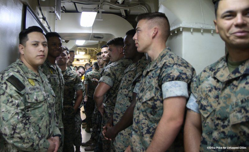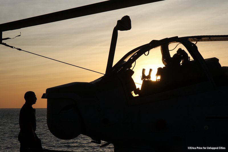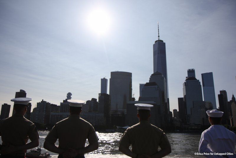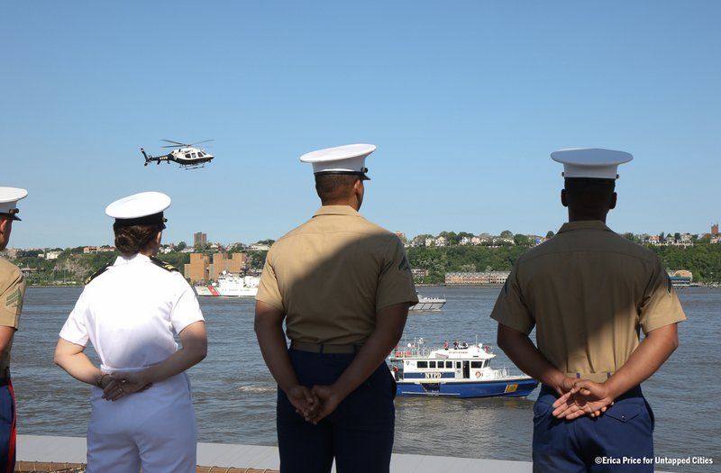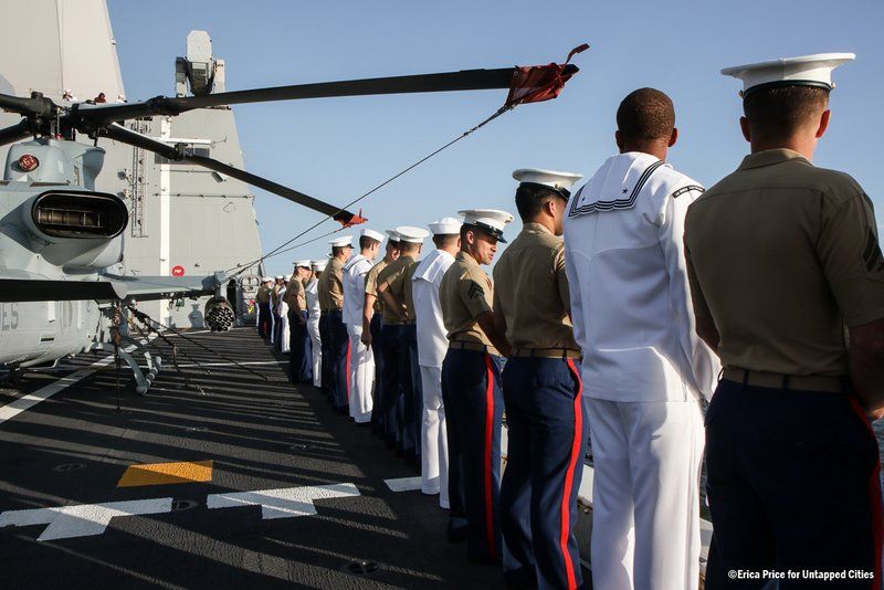 Earlier this week, Untapped Cities had the honor of embarking on the USS New York, the lead ship for the Parade of Ships during Fleet Week 2019, for an overnight stay. We flew in an Osprey helicopter from Manhattan and boarded somewhere in the Atlantic Ocean off the New Jersey coast. We were given a tour of the ship, bunked in an officer’s stateroom, shared meals with the captain and other officers, and witnessed many moving and inspirational events on this ship, which is dedicated to the victims of 9/11. This ship is the living representation of those people [who lost their lives on 9/11],” Command Master Chief, Ben Hodges of the USS New York told us on a tour of the ship, “It’s great to have the opportunity to bring the ship back to New York City.”