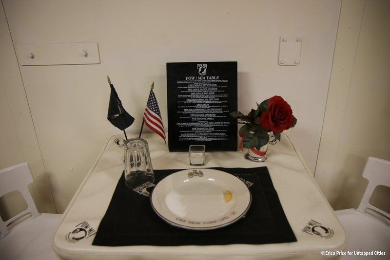 We already mentioned the Broadway street sign, but you will find memorabilia from New York City all over the ship. There are Port Authority police badges, collections of FDNY badges and flags, a New York City subway map and posters from MTA Arts & Design, subway signs, and more.
