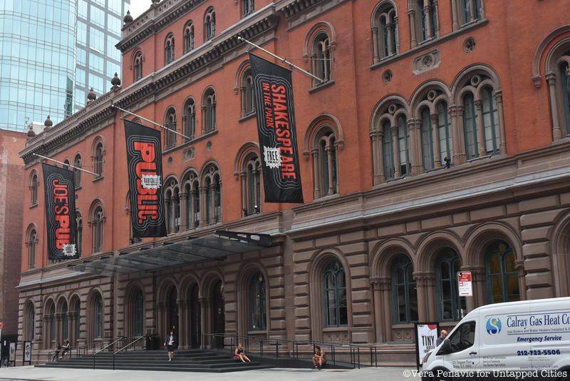 When theatrical producer and director Joseph Papp was shopping for a place to open his own theatre, the commission suggested the Astor Library. Papp hired architect Giorgio Cavaglieri to transform the red brick Astor landmark into the New York Shakespeare Festival Public Theater. Papp would later go on to found “Save the Theaters,” a group in the 1980s that worked to prevent the loss of historic theaters in Manhattan’s Theater District and Cavaglieri would work on the conversion of the Jefferson Market Courthouse into the Jefferson Park Library. Now known simply as The Public, Papp’s theatre was one of the nation’s first nonprofit theaters when it opened in 1966. In the seven theaters housed inside, The Public puts on an annual season of new work as well as Free Shakespeare in the Park at the Delacorte Theater in Central Park, and The Mobile Unit which tours throughout New York City’s five boroughs. The Public is an “artist-driven, radically inclusive, and fundamentally democratic” theater “of, by, and for the people.”