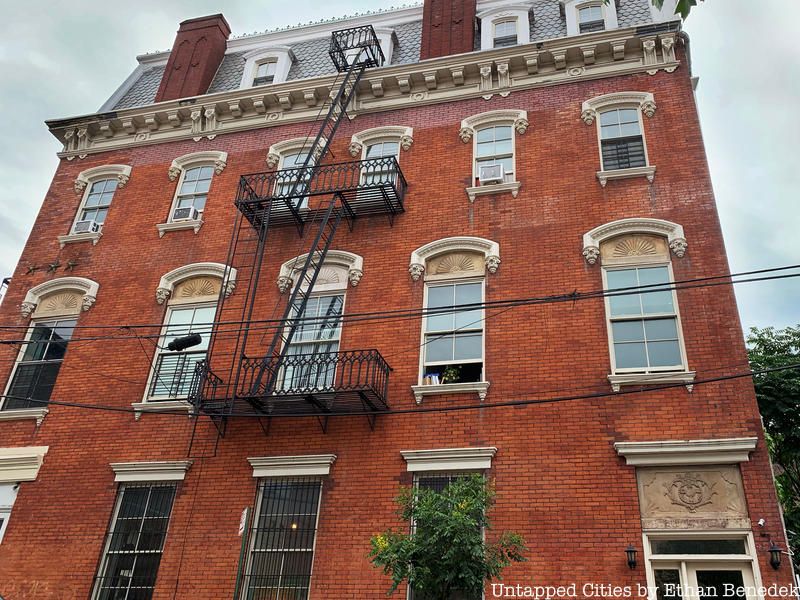 “The Second Empire and Italianate architectural features fused into the design of 614 Courtlandt Avenue make it stand out from other buildings in the surrounding Melrose neighborhood of the South Bronx. Tenzing Chadotsang of the Landmarks Preservation Commission notes that most people who see a picture of the building think it is located in the Lower East Side. It was actually the migration of German immigrants away from the overcrowded Lower East Side that inspired billiards hall owner Julius Ruppert to open a saloon and meeting rooms in the building in 1871. At that time, the South Bronx was a newly urbanized and rapidly growing community. After Ruppert’s death, his widow and heirs held onto the property until 1927. After a short run as a lunch counter and apartment building in the 1960s, the building was home to an after-hours club on the ground floor called “Le Freak.” The upper floors were also the center of the neighborhood drug trade, and the top floor was used as a brothel for many years in the 70’s and 80’s.