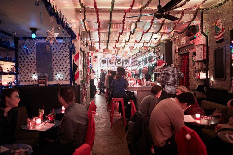 Its “Hanukkah Hideaway” provides a slight reprieve from the overwhelming wash of red and green, and compensates with silver and blue decorations to fit the holiday season. The menu, which offers mainly hot drinks, includes the Christmapolitan, Bad Santa, Jingle Balls Nog, Candy Cane Fizz, and the Wise Men. Address: 649 East 9th Street