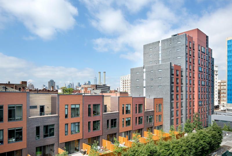 The mixed-income residential buildings, retail and green spaces developed by FXCollaborative across from the Brooklyn Navy Yard in Fort Greene sit on the site of a former Navy prison. Built in the 1940s, the Brig as it was called, served as a Navy prison during World War II and then as a detention center when the Navy Yard closed in 1966. The site was then converted into a minimum security prison which was in operation until 1994. The site was briefly used after that by volunteers helping with 9/11 cleanup.