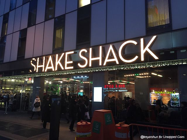 Shake Shack started off as a simple, high quality burger joint sold from a hot dog cart in Madison Square Park. The brand’s iconic minimalistic signage is found at its 17 outposts, but this one in Times Square is nothing but. Rumor has it that burgers served here is the least shackburger-like, but it looks like the jazzy signage and large windows are still attracting large amounts of patrons.