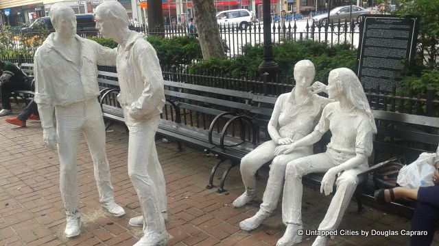 In commemoration of the events at the Stonewall Inn, George Segal’s monument at Christopher Park is a powerful symbol of one of the most important civil rights movements in the city’s history. These four white-lacquered bronze sculptures are meant to communicate the affection displayed by both males and females involved in the LGBT community. Although Mayor David N. Dinkins helped unveil the monument in 1992, the project was initially faced with some backlash as a result of the escalating AIDS epidemic. A second cast of this monument has since been built on the the campus of Stanford University in Palo Alto, California.
