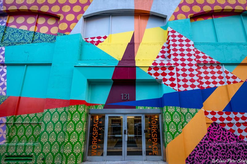 Greg Lamarche’s “Game Inside Game” features colorful vintage letter forms on the facade of S.O.B’s that reference the neighborhood’s printing press roots. Katie Mertz has painted the columns on 161 Varick Street and the Manhattan Mini Storage at 181 Varick Street in urban hieroglyphics. Brooklyn-based artist Hellbent (aka JMikal Davis) has created a colorful blocky piece at 131 Varick Street, and Claudia Ravaschiere and Michael Moss have a colorful prism of translucent glass at Freeman Plaza East. See a map of the pieces here. The works will be on display until Summer 2020.