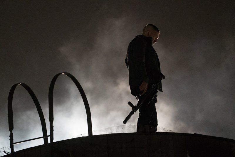 The trap for The Punisher, a sting coordinated by District Attorney Reyes, who tricks the less-than convinced Grotto, takes place at the Getty Fuel Terminal in Greenpoint. This is a super popular film location that comes up in nearly every crime show in New York City, and there’s even a film studio on the property called Broadway Stages. Later in the scene, Daredevil and The Punisher fight on the roof, with The Punisher taking Daredevil hostage.