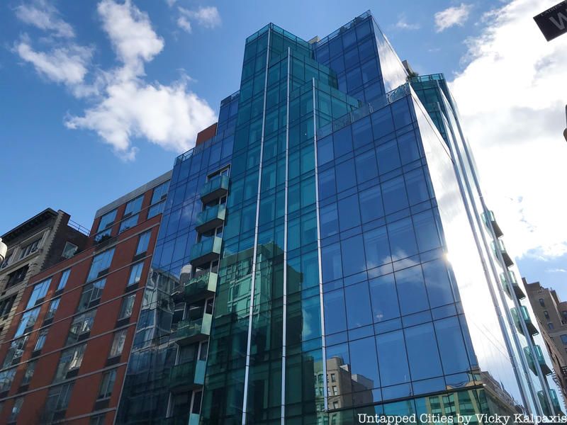 The Yakuza who are after Elektra speed down Fifth Avenue on their bikes and end up on 29th Street and stop at the Sky House apartments at 11 East 29th Street. We know from flashbacks that Elektra was placed in a very wealthy family by Stick, who wants her to learn the cultivated arts. It seems that she has inherited quite a bit of property and money as a result. The actual apartment the scene takes place in is not located in this building, but the penthouse of Sky House has an insane 80-foot silver slide inside. A big fight commences, with Elektra and Daredevil coming out on top, of course.