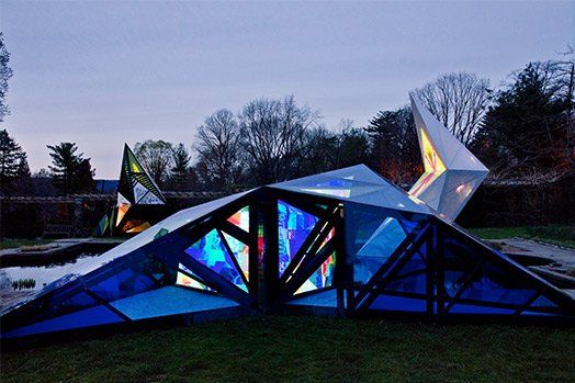 We enjoyed Tom Fruin’s colorful Kolonihavehus when it was here during the Dumbo Arts Festival, and are pleased to see it back in the Brooklyn Bridge Park following a tour of Europe and Scandinavia. The installation is made of found plexiglass and steel and is 12′ x 12′ x 14′ in size. You will find this installation near Jane’s Carousel until June 2015.